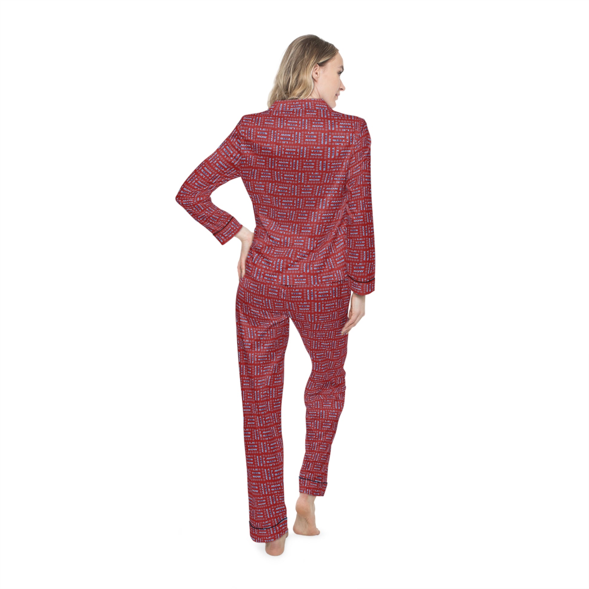 LETitSNOW - Women's Satin Pajamas Set - Bold Red Print, Cozy Nightwear, Perfect for Sleepovers, Birthdays, Mother's Day, Self-Care Days